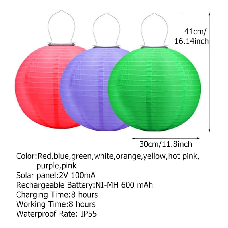 12" Solar Powered Lanterns Waterproof Outdoor Nylon Cloth Paper Lantern Lamps Garden Hanging Paper Lanterns 7
