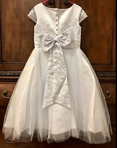 Kids Appliques Pageant Wedding Flower Girl Dresses Tulle with Bow 14 White 1
