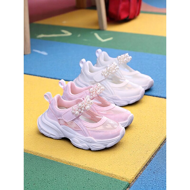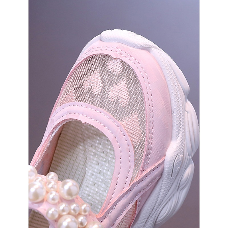 HOT ! Girls' Pink Mesh Mary Jane Sneakers with Pearl Strap – Breathable Lightweight Back to School Sport Sandals for Playground and Daily Wear