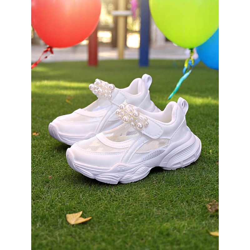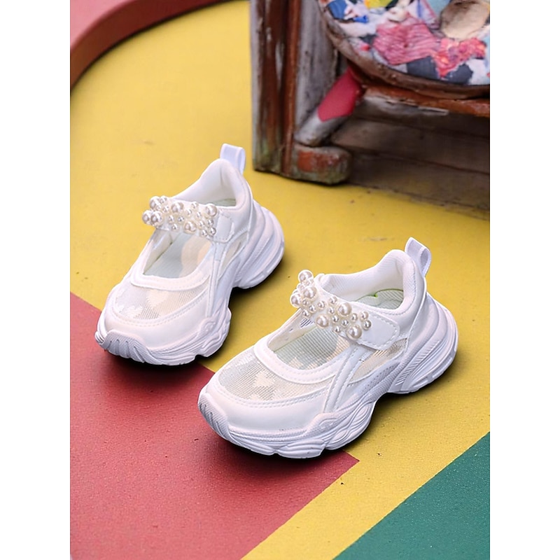 Girls' Pink Mesh Mary Jane Sneakers with Pearl Strap – Breathable Lightweight Back to School Sport Sandals for Playground and Daily Wear 1