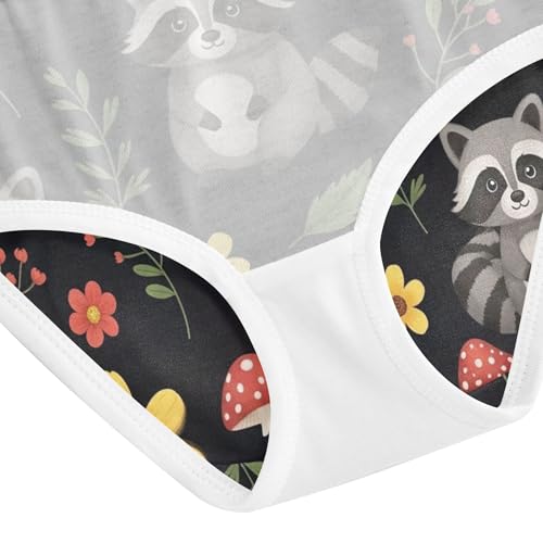 Cute Raccoons Floral Black Little Girl Panties Girls Underwear Toddler Cotton Fancy Kids Undies Briefs 2t 5