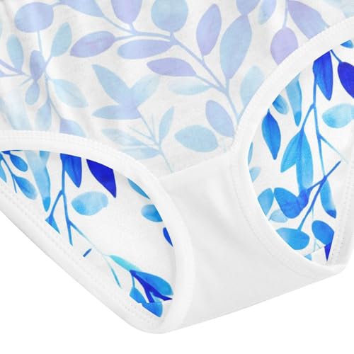 Watercolor Blue Leaves White Panties for Girl Girls Underwear Toddlers Cotton Fun Print Kids Briefs Undies 2t 5