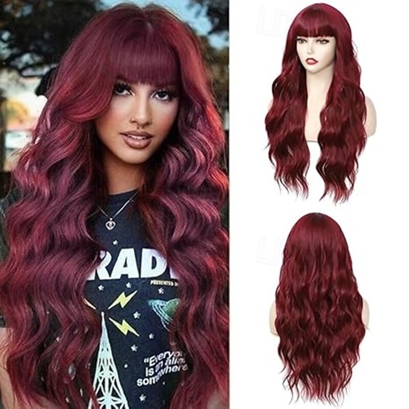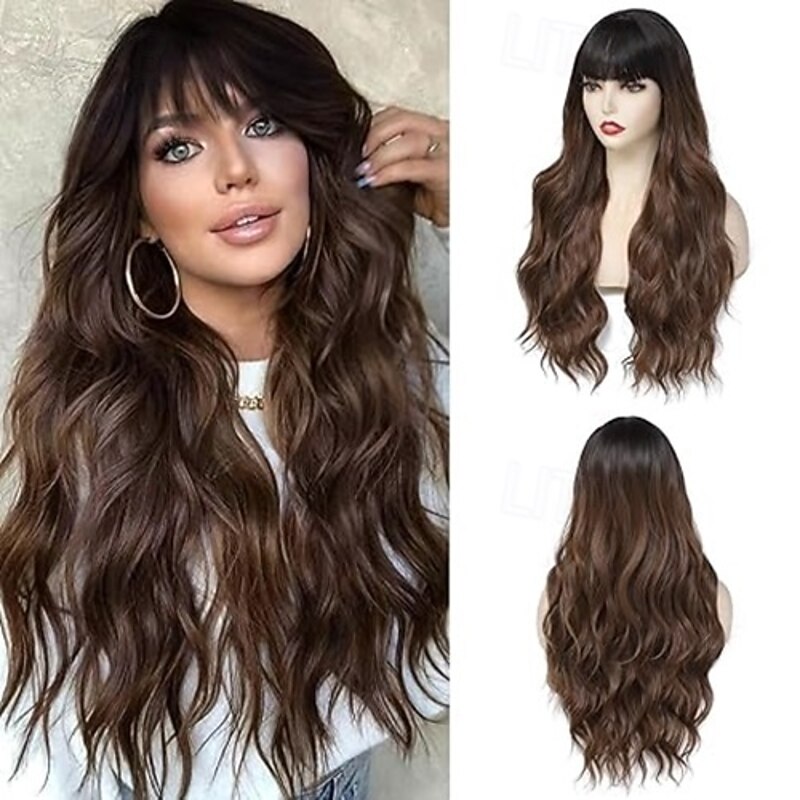 $19.49 - Long Wavy Wig With Bangs for Women Curly Wavy Wig With Bangs Natural Looking Synthetic Heat Resistant Fiber Wig for Daily Party Use 2025. Shop for cheap Synthetic Trendy Wigs online? Buy at lightinthebox.com on sale today!