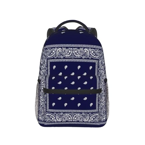 Blue Bandana Paisley Border Print Backpack Laptop Backpack Sports Travel Shoulder bag Light casual backpack 1