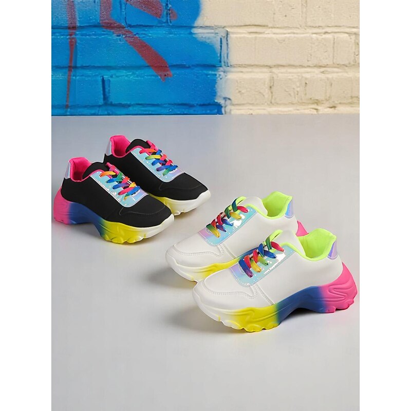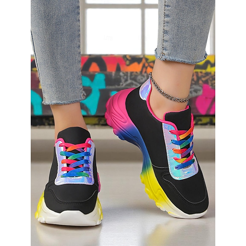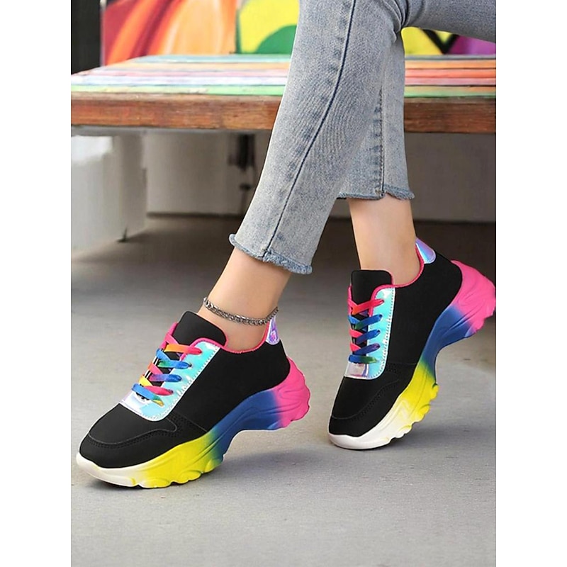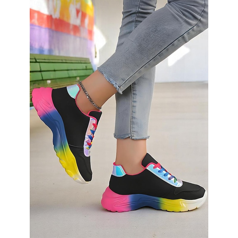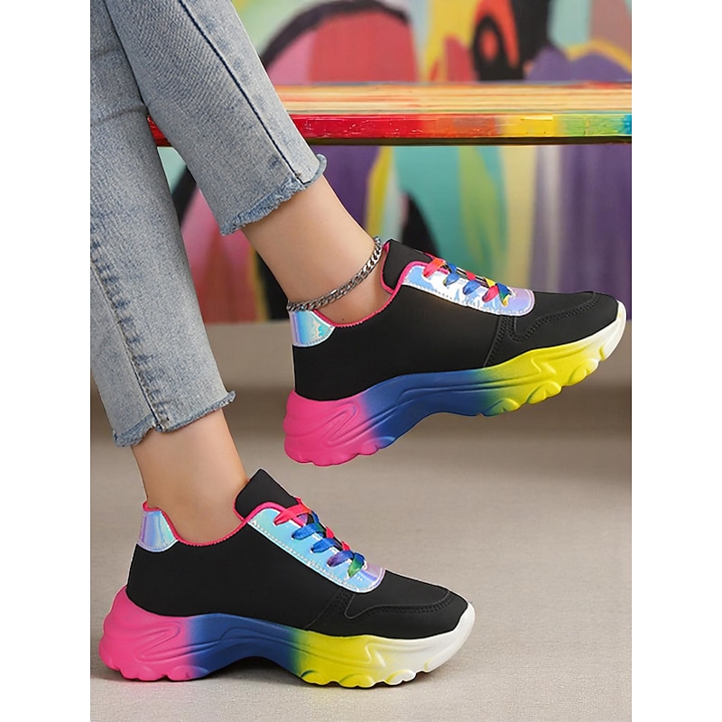 HOT ! Women's Colorful Gradient Sole Chunky Sneakers – Fashion Rainbow Lace-Up Trainers for Casual Outfits, LGBT Festival Outfits and Street Style