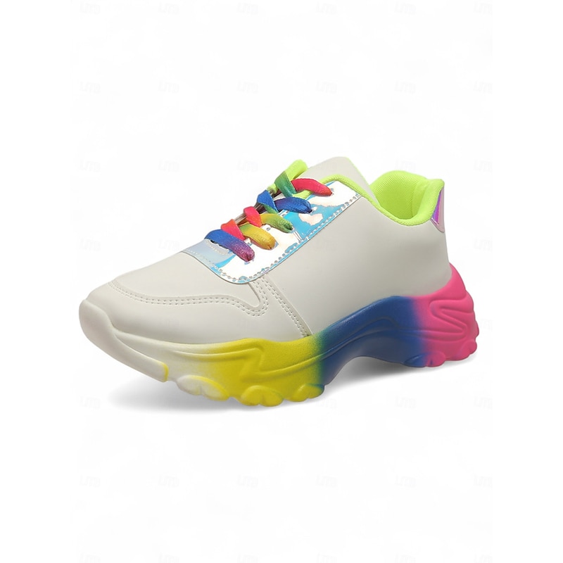 Women's Colorful Gradient Sole Chunky Sneakers – Fashion Rainbow Lace-Up Trainers for Casual Outfits, LGBT Festival Outfits and Street Style 1