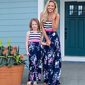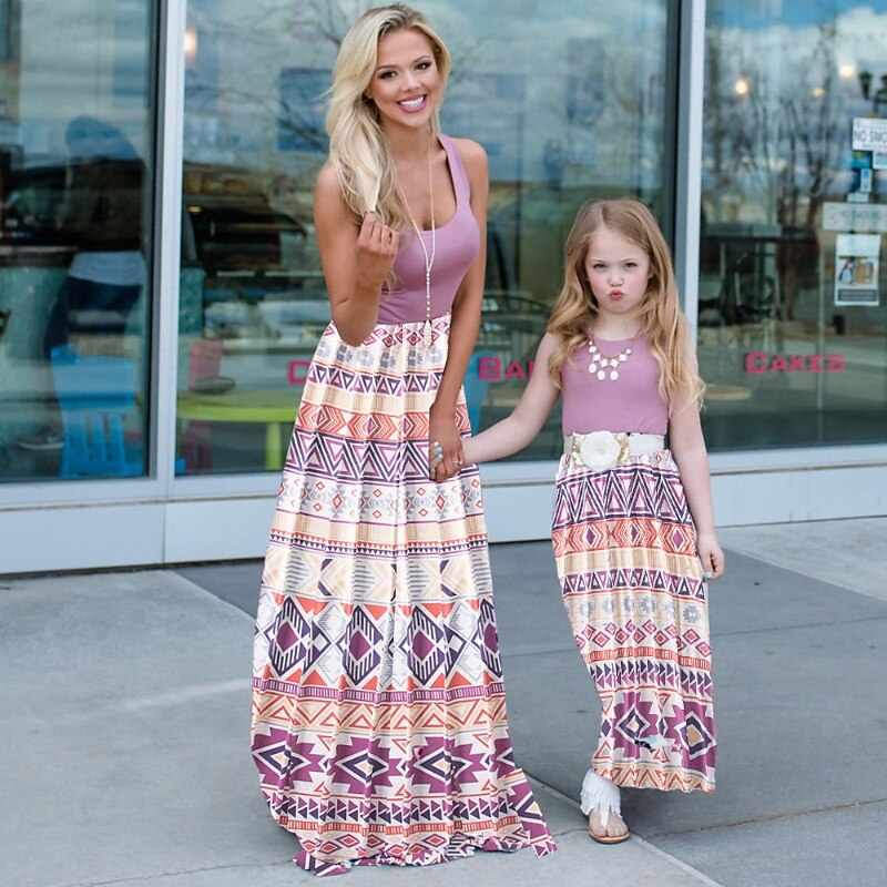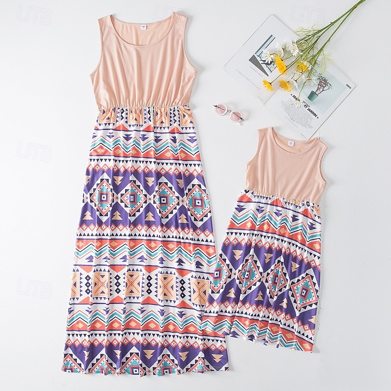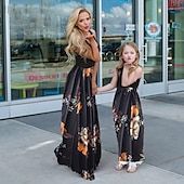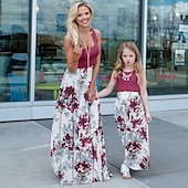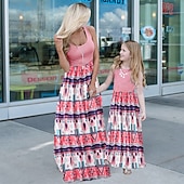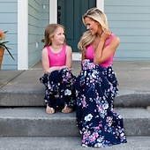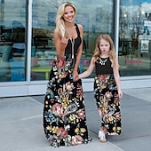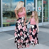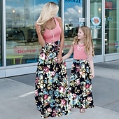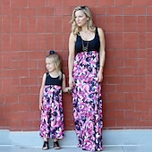 More information about Mommy and Me Dresses Floral Street Patchwork Light Pink Black-1 Black-3 Sleeveless Maxi Tank Dress Active Matching Outfits