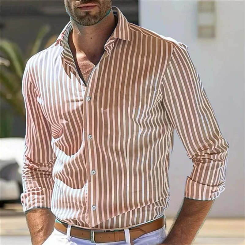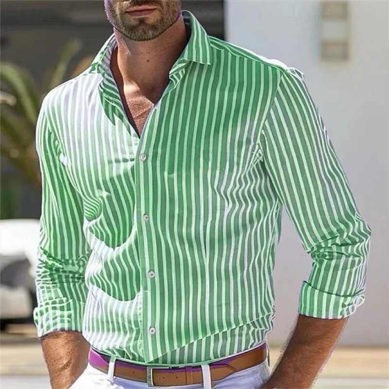 More information about Men's Shirt Summer Shirt Casual Shirt Beach Shirt Button Up Shirt Light Pink Yellow Light Green Red Green Long Sleeve Stripes and Plaid Lapel Vacation Hawaiian Clothing Apparel Polyester Fashion