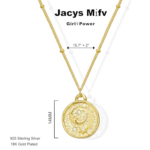 More information about Celestial Coin Necklace - 925 Sterling Silver Moon & Star Coin Pendant with 3 Zircons, 18K Gold Plated Adjustable Chain (40+5cm/15.7"+2"), Astronomy Jewelry Gift