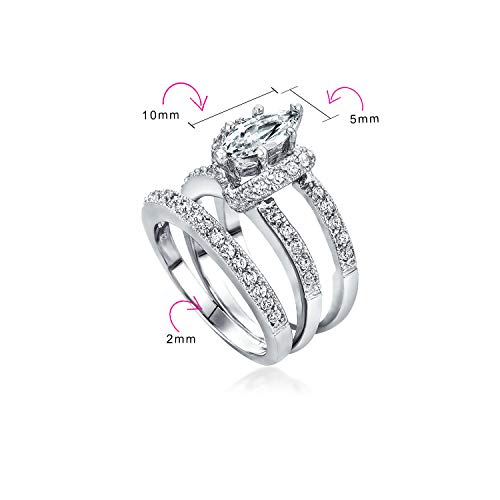 Personalize Vintage Art Deco Style 5-3 CT Cubic Zircoinia Brilliant Cut Round Solitaire Marquise Oval AAA CZ Inset Guard Enhancers Anniversary Engagement Ring Wedding Band Set .925 Sterling Silver 2