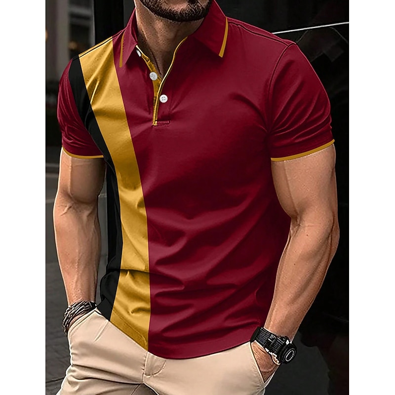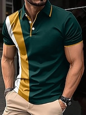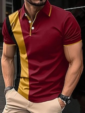 More information about Men's Polo Shirt Button Up Polos Casual Sports Lapel Short Sleeve Fashion Basic Color Block Patchwork Summer Regular Fit Black White Red Navy Blue Dark Green Polo Shirt