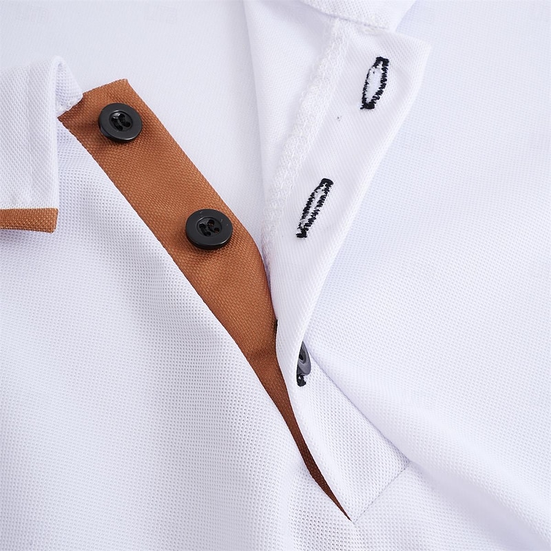 Men's Polo Shirt Button Up Polos Casual Sports Lapel Short Sleeve Fashion Basic Color Block Patchwork Summer Regular Fit Black White Red Navy Blue Dark Green Polo Shirt 5