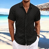 More information about Men's Shirt Summer Shirt Casual Shirt Beach Shirt Button Up Shirt Black White Light Green Blue Dark Green Short Sleeve Plain Collar Vacation Daily Clothing Apparel Fashion Casual Comfortable