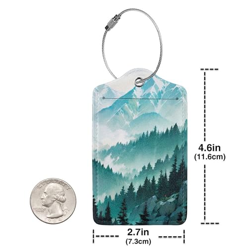2 Pack Luggage Tags Travel Green Mountains Peaks Spectacular PU Cute Leather Luggage Tag Name ID Labels with Privacy Cover Suitcases Women Men Girls Boys Fun Laggage Tags(Mountain top) 7