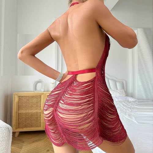 More information about Women Sexy Halter See Through Dress Beach Swimsuit Cover Up Swimwear Sheer Tassel Dresses Nightclub Bodycon Lingerie