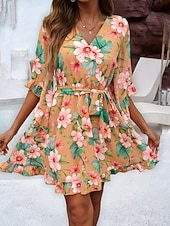 Women's Mini Dress Petite Dress Casual Dress Floral Dress Summer Dress Slip Dress Fashion Modern Daily Beach Weekend Regular Fit Floral 3/4 Length Sleeve V Neck Black Yellow Orange Green Summer 29