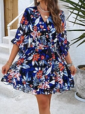 More information about Women's Mini Dress Petite Dress Casual Dress Floral Dress Summer Dress Slip Dress Fashion Modern Daily Beach Weekend Regular Fit Floral 3/4 Length Sleeve V Neck Black Yellow Orange Green Summer