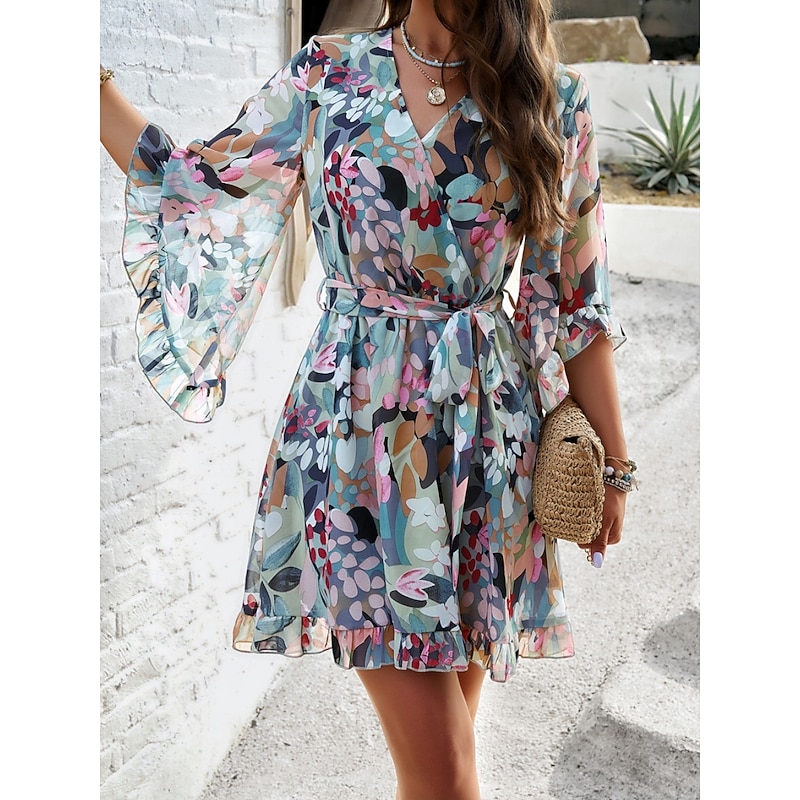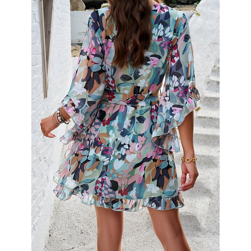 HOT ! Women's Mini Dress Petite Dress Casual Dress Floral Dress Summer Dress Slip Dress Fashion Modern Daily Beach Weekend Regular Fit Floral 3/4 Length Sleeve V Neck Black Yellow Orange Green Summer