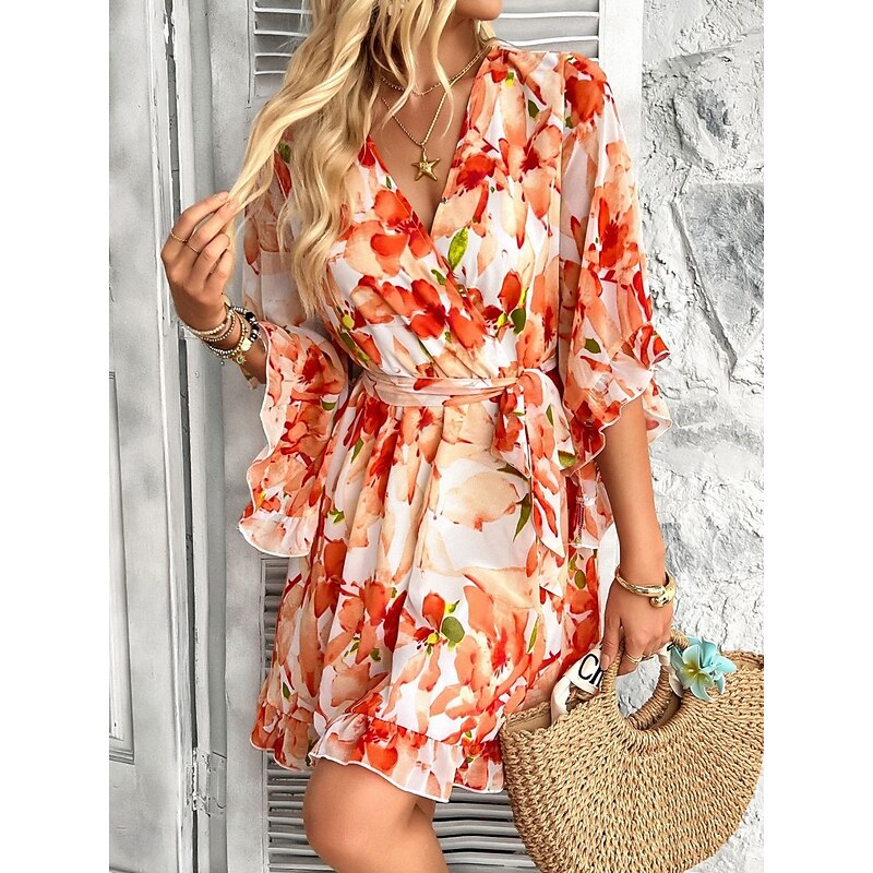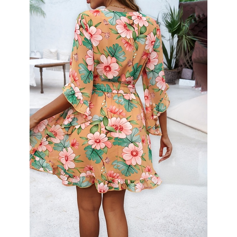 Women's Mini Dress Petite Dress Casual Dress Floral Dress Summer Dress Slip Dress Fashion Modern Daily Beach Weekend Regular Fit Floral 3/4 Length Sleeve V Neck Black Yellow Orange Green Summer 3