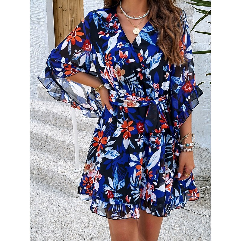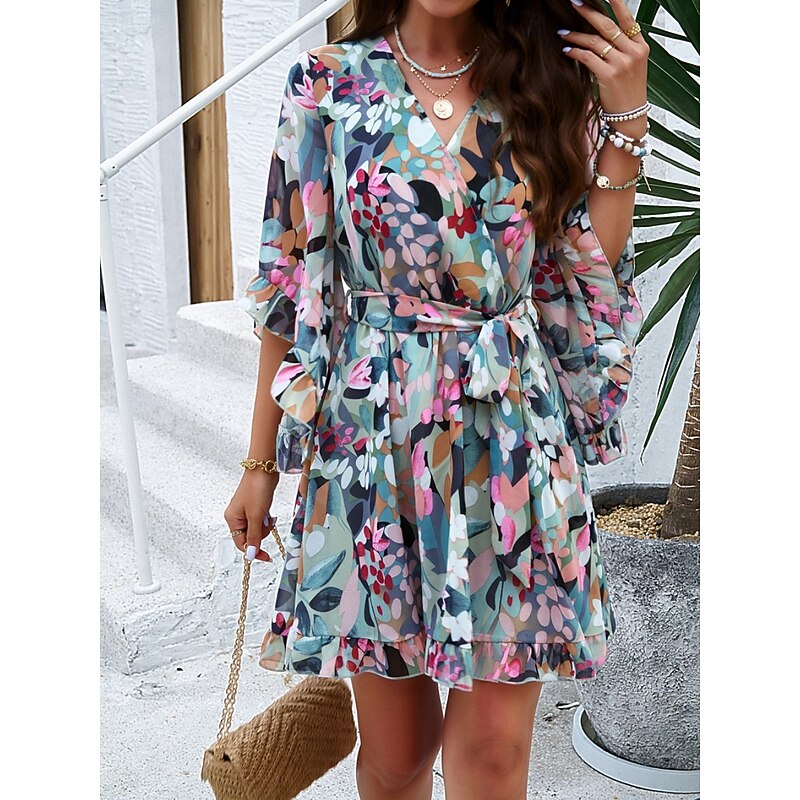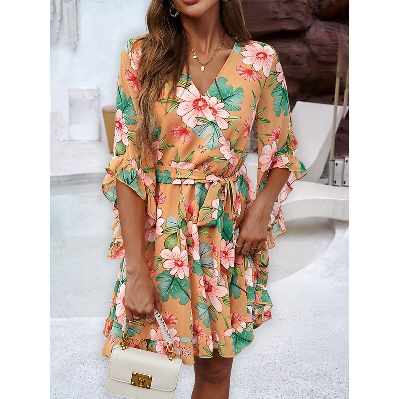 Women's Mini Dress Petite Dress Casual Dress Floral Dress Summer Dress Slip Dress Fashion Modern Daily Beach Weekend Regular Fit Floral 3/4 Length Sleeve V Neck Black Yellow Orange Green Summer 26