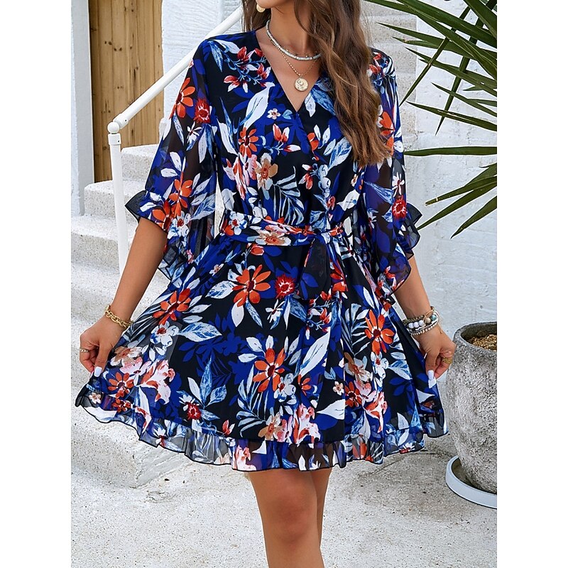 Women's Mini Dress Petite Dress Casual Dress Floral Dress Summer Dress Slip Dress Fashion Modern Daily Beach Weekend Regular Fit Floral 3/4 Length Sleeve V Neck Black Yellow Orange Green Summer 28