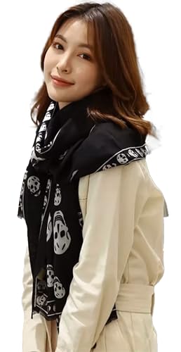 Mazeology Skull Scarf Genuine Pure Silk Soft Chiffon 58.5” Long Scarf Gothic Punk Pirate Black/White 26” Wide for Women/Men Trendy Fashion Accessory 4