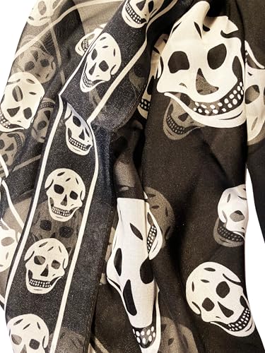 Mazeology Skull Scarf Genuine Pure Silk Soft Chiffon 58.5” Long Scarf Gothic Punk Pirate Black/White 26” Wide for Women/Men Trendy Fashion Accessory 7