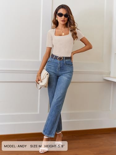• Features: The women's trendy pullover feature a square neck, short sleeve, ribbed knit, slim fitted, bodycon fit, form-fitting, solid color, and hip-length. Create a formal, sexy, classy, fashion, simple, and dressy 2025 spring summer look