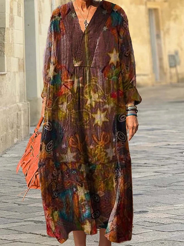 More information about Women's Midi Dress Sundress A Line Dress Vacation Casual Boho Going out Beach Loose Fit Graphic Geometric Abstract Long Sleeve V Neck Red Blue Purple Green Spring Fall Winter Autumn