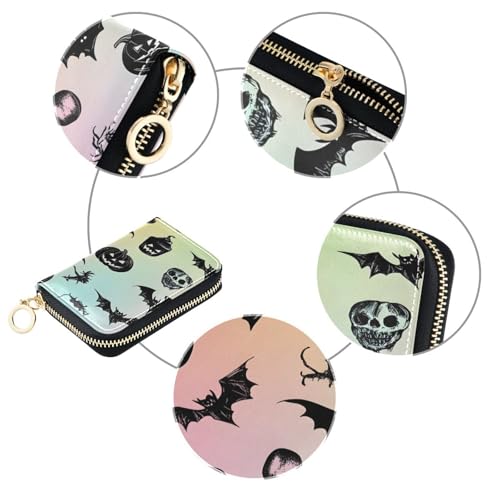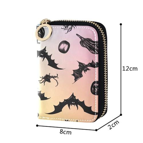 HOT ! Small RFID Credit Card Holder Wallet with Zipper, Leather Wallet Case for Women Halloween Elements