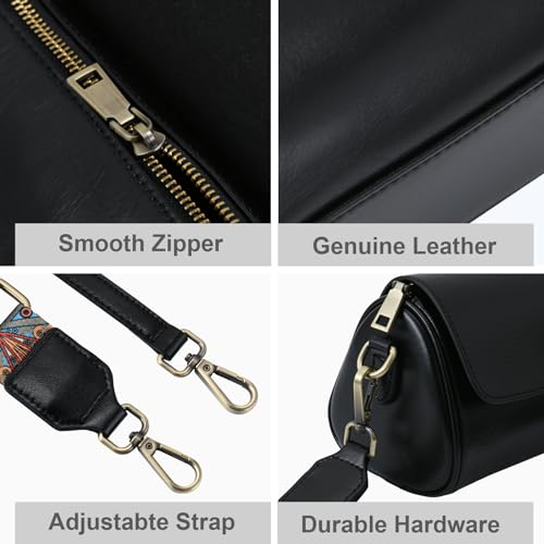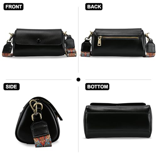 • Small & Lightweight: The small crossbody purse is 8.3"L*4.7"H*4.1"W. Small but also roomy space to hold daily essentials. Come with two detachable & adjustable long guitar strap (17.7" to 26.7" height).A weaving shoulder strap and a Leather shoulder strap.