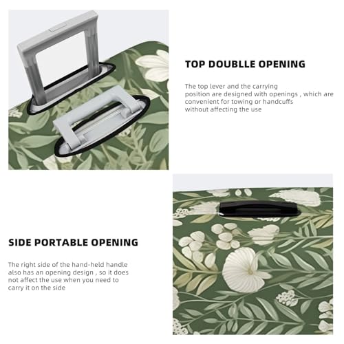 White Flower Green Leaf Luggage Cover Elastic Suitcase Protector Ftis 22-24 Inch Suitcase Cover for Luggage 4