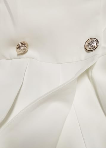 Nihsatin Women's Double Breasted Blazer Jacket Lapel Collar Short Sleeve Pleated Hem Blazer Dress 6