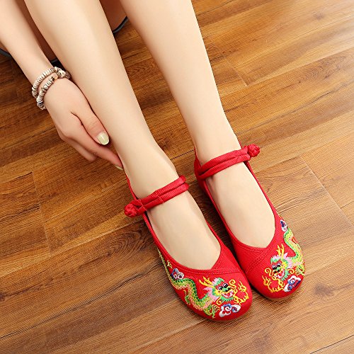 Qhome Womens Chinese Traditional Dragon Embroidery Flats Cheongsam Walking Mary Jane Shoes 5