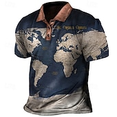 : With a nautical 3D print and a unique world map motif, this polo shirt exudes a trendy and adventurous vibe. It includes a classic collared neckline with a buttoned placket, providing a sophisticated touch. The contrasting colors add to its striking appearance, while the phrase "The World Awaits" enhances its adventurous allure.
