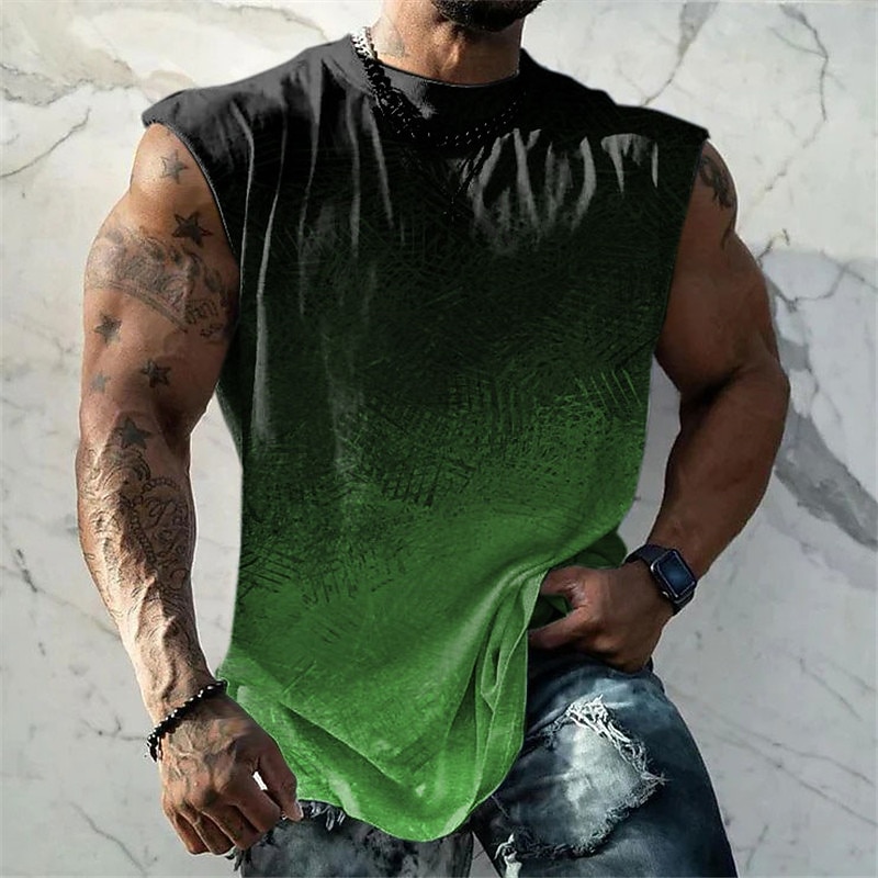 Men's Graphic Gradient Vest Top Sleeveless T Shirt for Men Double Color T Shirt Sleeveless Cap Sleeve T shirt 3D Print Crew Neck Shirt Fashion Designer Muscle Daily Sports Gym Yellow Blue Purple 10