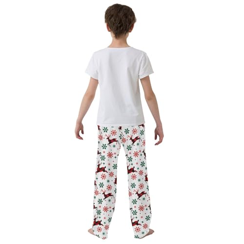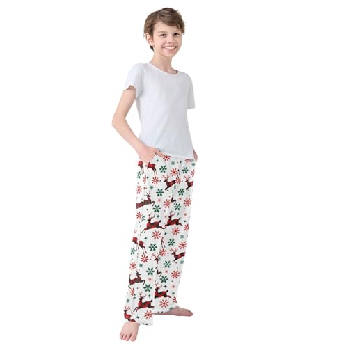 Christmas Pajama Pants Red Elk Snowflake Long Sleep Pants Lounge Bottoms 6