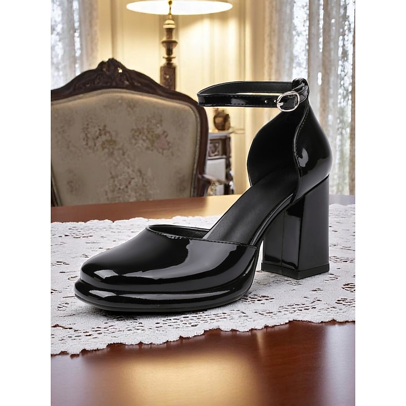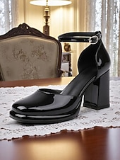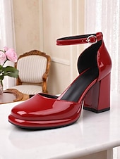 More information about Women's Red Patent Leather Block Heel Pumps – 1950s Vintage-Inspired Ankle Strap Dress Shoes for Parties, Work, and Special Occasions