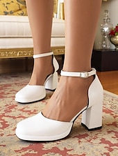 Highlights - Crafted with durable PU upper materials and synthetic leather lining for long-lasting wear - Features a stylish buckle embellishment for a trendy touch - Designed with a comfortable chunky heel for all-day wear - Rounded toe shape for a classic look - Outsole made of rubber for excellent grip and traction