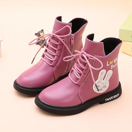IWIHMIV Toddler Girl Ankle Boots Toddler Dress Boots Winter Shoes for Toddler Girls Leather Lace-Up Boots Soft Flat Ankle Boots 4