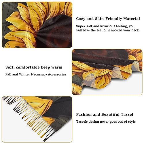 Vnurnrn Cashmere Feel Scarf for Women, Soft Warm Single-sided Black Yellow Sunflower Print, Fashion Pashminas Shawl Wrap Large Size with Tassels 5