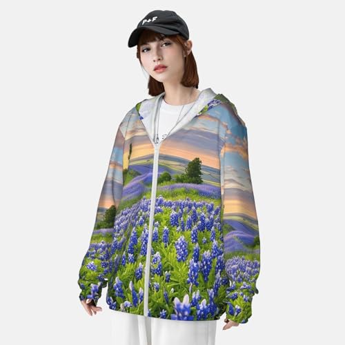 • UV Protection: Our Texas Bluebonnets Scenery long sleeve sun shirts features cutting-edge UPF 50+ technology, effectively blocking UV rays to ensure robust sun protection during your outdoor adventures. Designed with a hood to protect the neck, and other sun-exposed areas. Ideal for extended outdoor activities