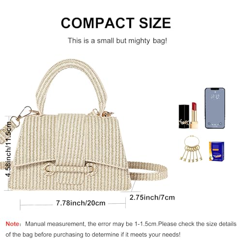 • Compact Size: Measuring approximately 7.78 inches wide and 4.5 inches tall, this mini purse offers just the right capacity to store your essentials like a phone, keys, a lipstick,coins and compact makeup