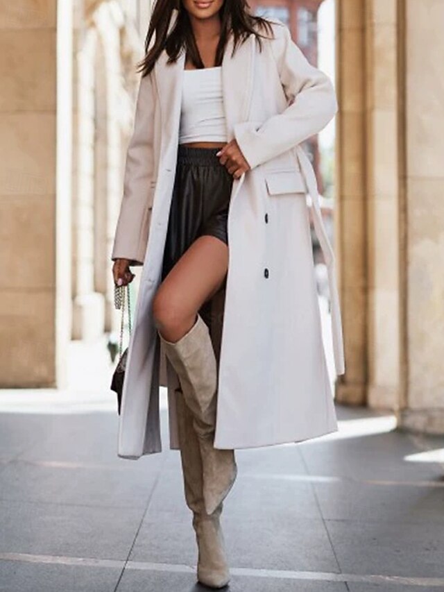 Women's Casual Jacket Warm Comfortable Pocket Buttons Fashion Outdoor Plain Going out Weekend Single Breasted Regular Lapel Regular Fit Long Sleeve Outerwear Black White Pink Fall Winter 14