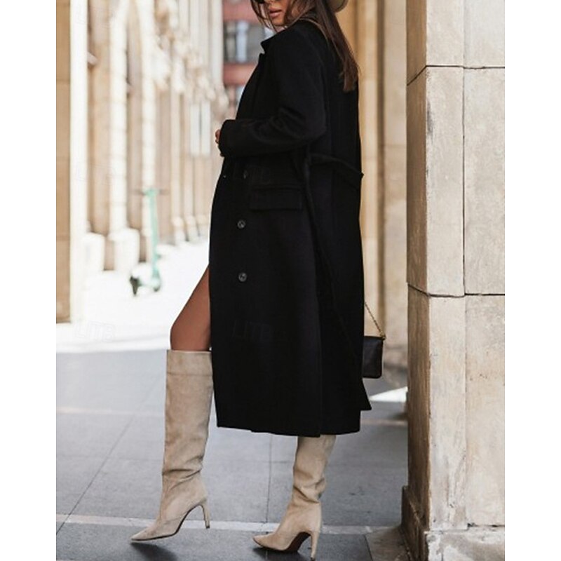 Women's Casual Jacket Warm Comfortable Pocket Buttons Fashion Outdoor Plain Going out Weekend Single Breasted Regular Lapel Regular Fit Long Sleeve Outerwear Black White Pink Fall Winter 11