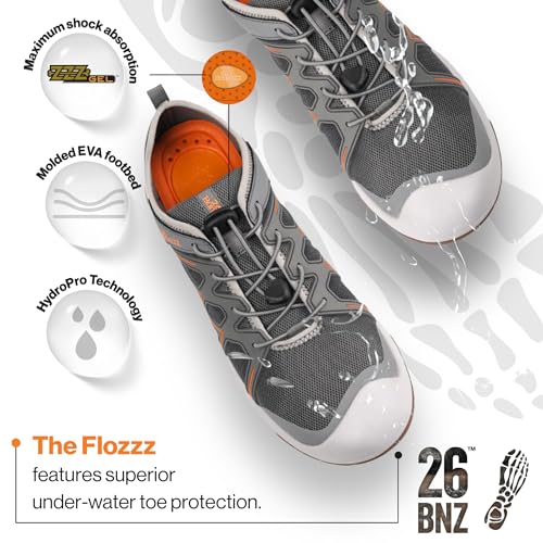 • Lock In Fast, Stay Secure: No laces, no drag, just toggle, tighten, and go; Flozzz’s bungee system gives you a snug, stay-put fit in seconds so you can run, paddle, or hike without missing a beat with our kayak shoes for men