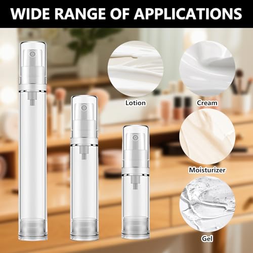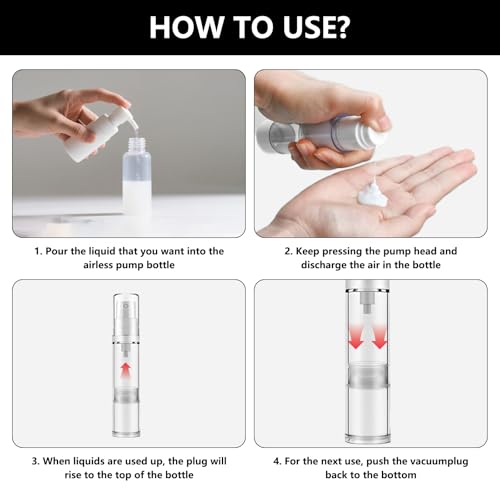 • Packaging Includes: Includes 4pcs 0.5OZ/15ML, 4pcs 0.35OZ/10ML and 4pcs 0.17OZ/5ML, it's easy organization making this compact airless pump ideal for on-the-go use