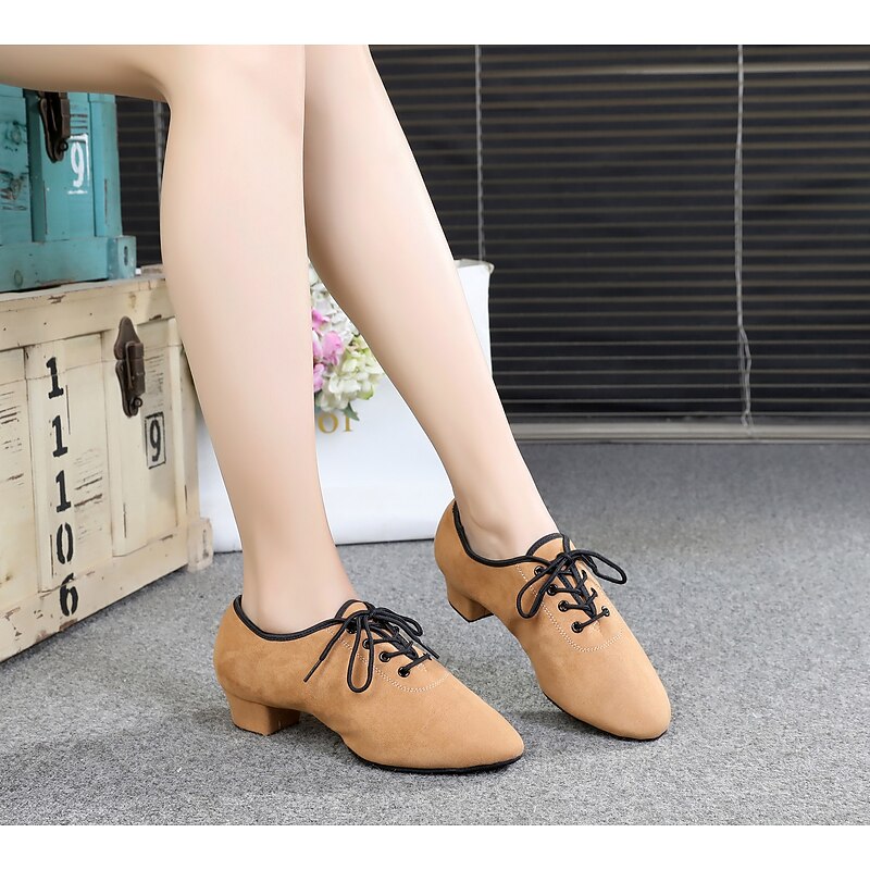 HOT ! Women's Suede Lace-Up Dance Shoes with Soft Suede Sole – Comfortable Low Heel Ballroom Shoes for Professional and Practice Use