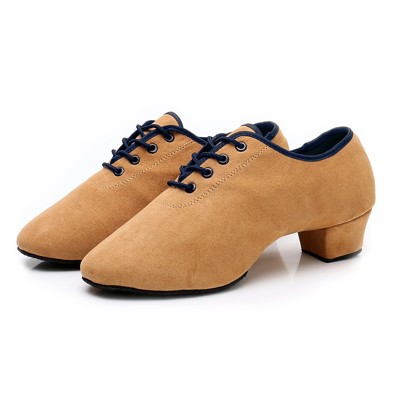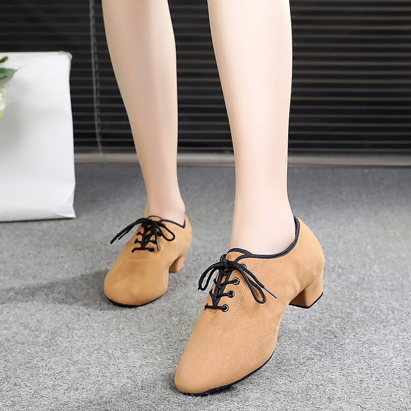 Women's Suede Lace-Up Dance Shoes with Soft Suede Sole – Comfortable Low Heel Ballroom Shoes for Professional and Practice Use 1