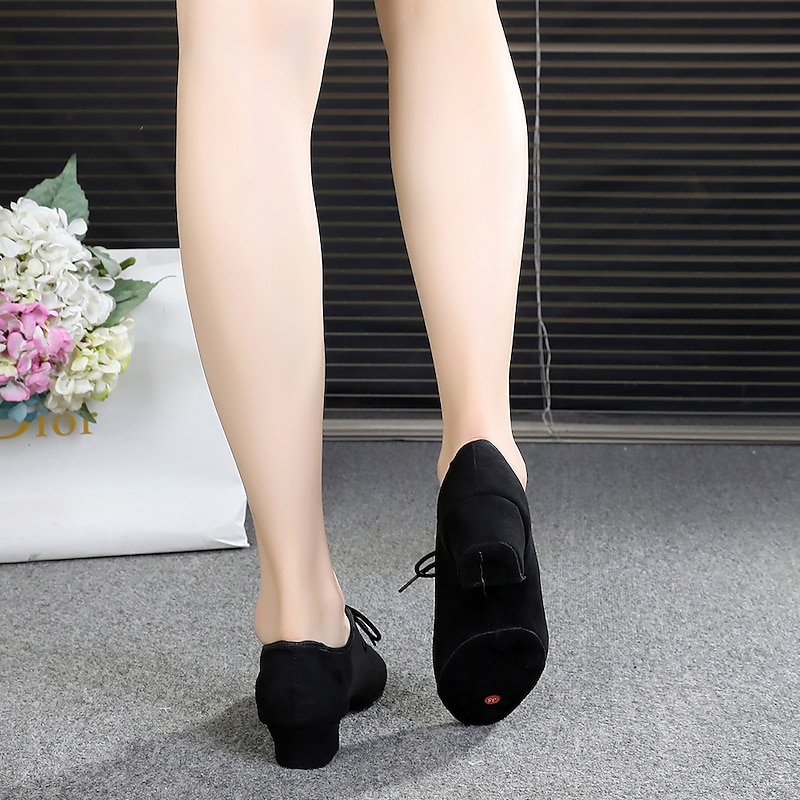 Women's Suede Lace-Up Dance Shoes with Soft Suede Sole – Comfortable Low Heel Ballroom Shoes for Professional and Practice Use 19